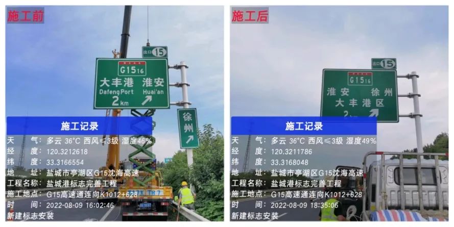 近日,盐城港通往各港区高速道路标识指引牌工程G15沈海高速路段的道路指示牌已完成部分更换工作。