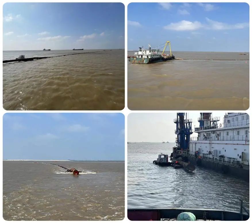 近日,盐城港射阳港区3.5万吨航道维护疏浚工程顺利完成跨航道沉管布设。