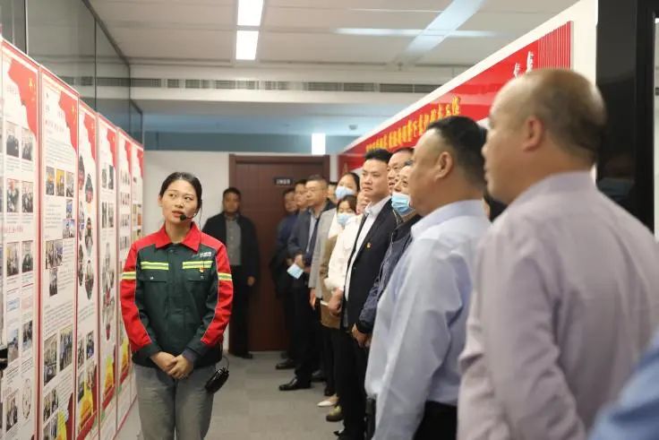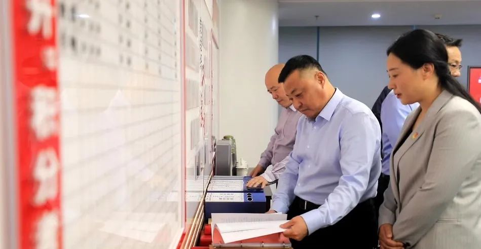 与会人员现场观摩了陆港集团机关党支部党建、群团开展工作亮点展示,详细了解该支部标准化建设台账资料整理、党建阵地规范化建设情况。