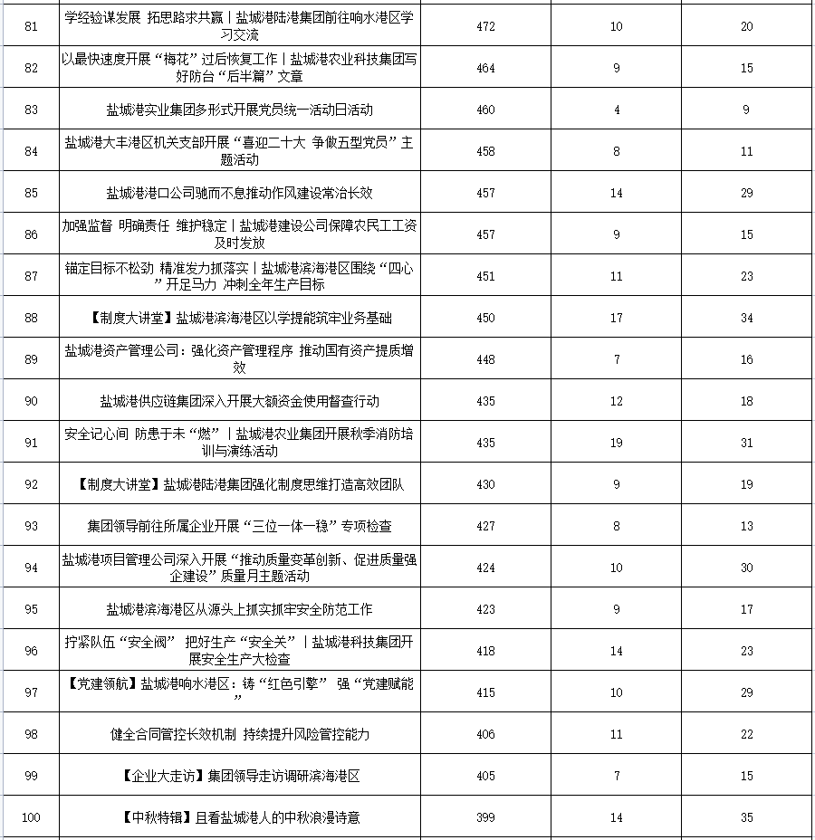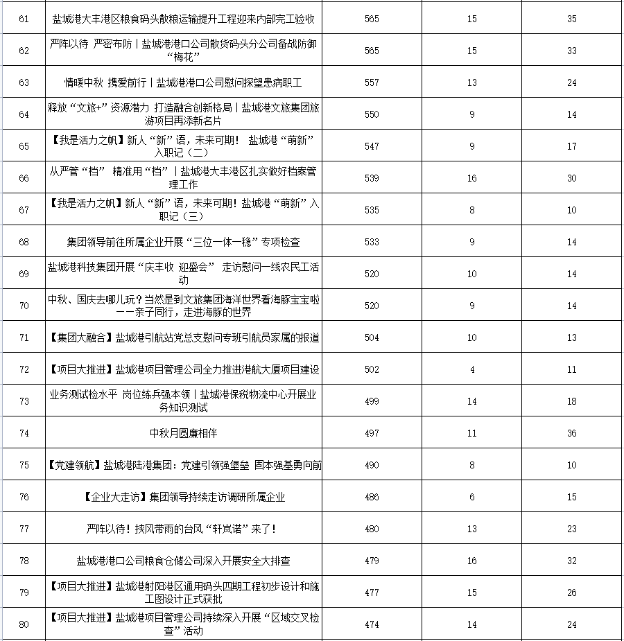 9月,新闻宣传战线紧扣集团中心工作,“五大活动”宣传扎实推进,如火如荼;聚焦中秋等热点,用心策划,创新呈现......全方位讲好盐城港故事,传播盐城港声音。
