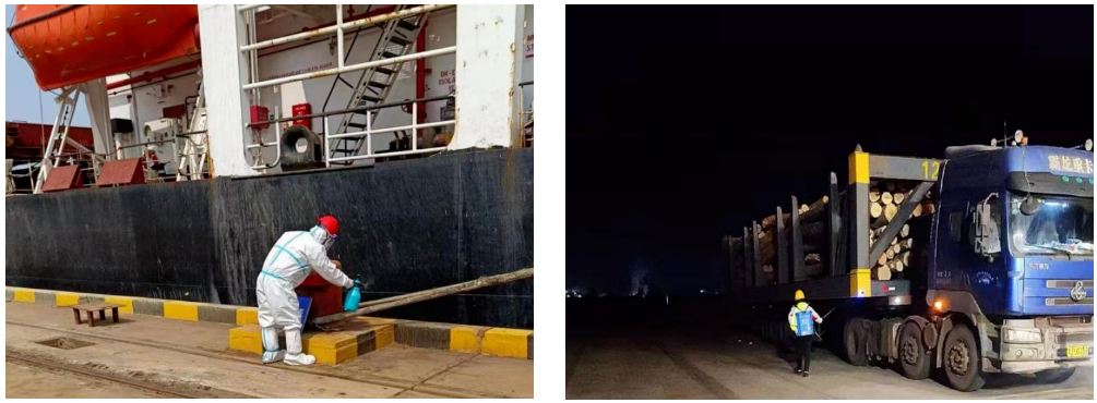 各办公区域和生产场所按规定统一采购消毒液,对人员密集活动区域进行防疫消杀工作,特别在门岗、磅房、公用卫生间、候工室等公共场所进行定期消杀。码头靠船作业严格遵照《港口及其一线人员新冠肺炎疫情防控工作指南(第十版)》要求,严格执行码头作业消杀程序,将“非必要不登船”、开展健康承诺、离港后核酸检测等工作落细落实。