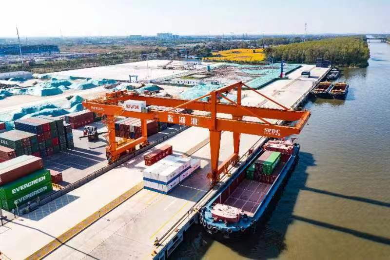 盐城港是江苏沿海中部唯一出海通道,也是淮河生态经济带的出海门户。陆港集团围绕“内河港口网络化、河海联运一体化”发展总体要求,积极构建规划科学、布局合理、功能完备、衔接顺畅、绿色智慧的海河联运发展服务体系。10月份,“大丰港区—亭湖港区—南京龙潭港”集装箱班轮航线成功开航,有效串联南京与盐城港口群,在满足两港腹地及淮河上游城市群产业发展需求的同时,进一步丰富了盐城港在长三角、长江中上游、中西部内陆以及淮河流域的江河海多式联运“菜单”。同月,首批经“沪盐专线”运抵盐城港大丰港区的美棉项目货,通过“海河联运”运输模式成功运抵陆港集团亭湖港区,实现了海河联运集装箱运输从零到一、从无到有的突破。海河联运业务的成功开展,使得内河与外海成为有机整体,让海与河有效实现了“无缝衔接”,为陆港集团积极打造海河联运示范中心、市域综合集疏运港口奠定了重要基础。