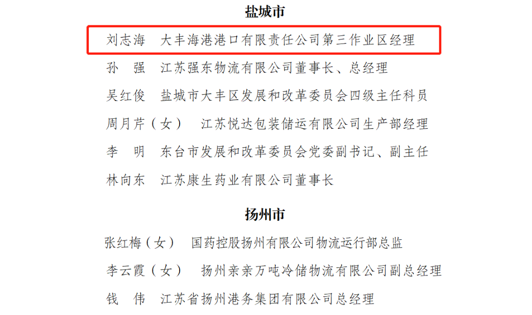 近日,省人力资源社会保障厅、省发展改革委、省物流产业促进会、省物流与供应链研究院在太仓市联合举办“2022年度江苏省重点物流企业30强”“全省物流行业先进集体和先进个人”“省级示范物流园区10强”等授牌仪式,海角社区 下属单位大丰海港港口有限责任公司荣获“2022年度江苏省重点物流企业30强”荣誉表彰,港口公司第三作业区经理刘志海荣获“全省物流行业先进个人”荣誉表彰。