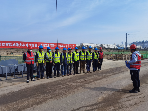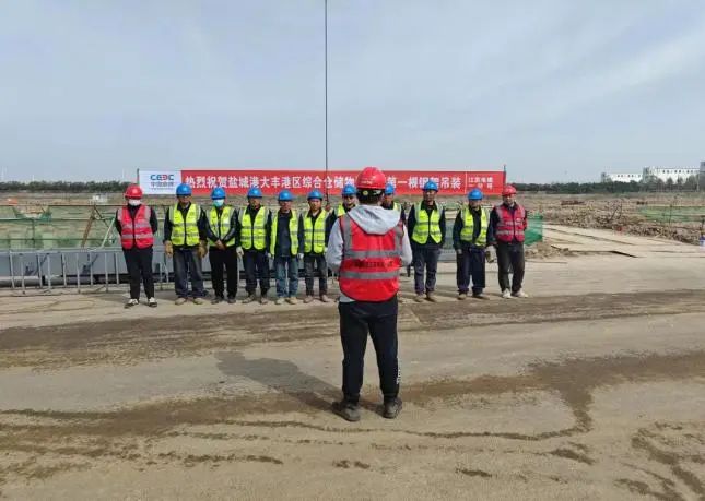 在机械及司号声中,第一根预制钢架被徐徐吊起,稳稳地安装在承台基础上,由项目咨询公司代管的大丰港综合仓储物流项目钢结构工程首吊成功完成,标志着该项目正式进入安装施工阶段,开启建设新篇章。
