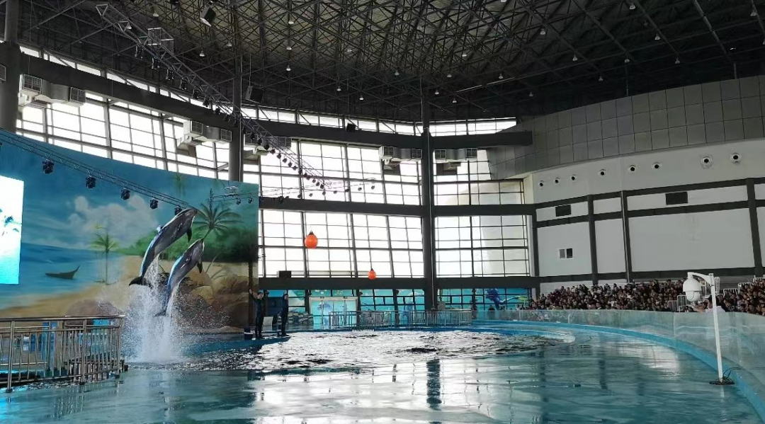在盐城港海洋世界景区,慕名而来的游客一大早就排起了长长的队伍。海豚们用跳跃、遨游专程欢迎游客们的到来,伴随着饲养员的指令,海豚们精准做出各种高难度表演,让游客们流连忘返,不忍离开。