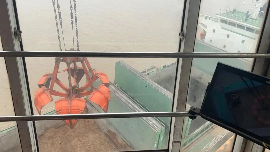 可以看到抓斗抓取货物的场景