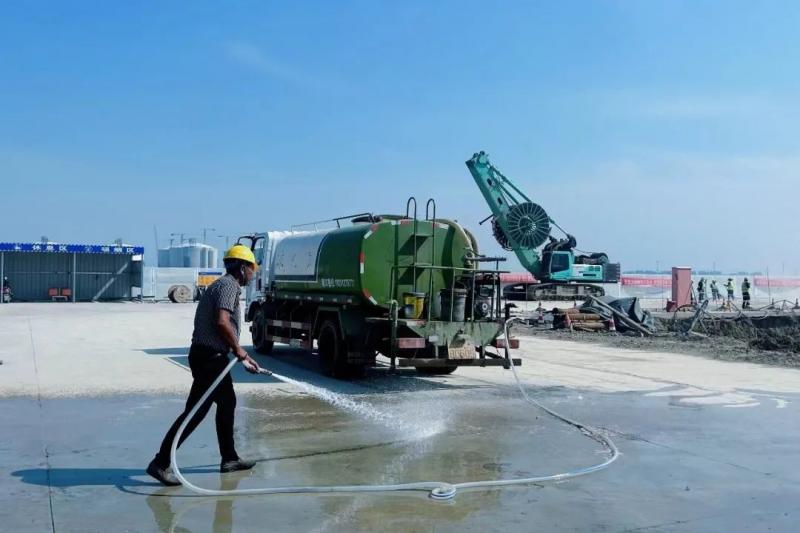一是提高环境整洁度。在施工期间,对施工现场主要通道、道路进出口、材料加工区、生活办公区进行硬化处理。安排洒水车辆定时倾洒施工便道,确保道路干净无淤泥、无浮土、无积水。做好围挡全封闭、土方挖运作业降尘、渣土车辆密闭运输、裸露地面全覆盖等工作,将扬尘管控作为日常工作常抓不懈。