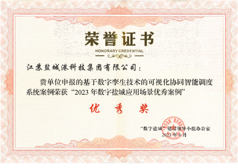 近日,“数字盐城”建设领导小组办公室公布了2023年“数字盐城”应用场景优秀案例名单。科技集团申报的盐城电子口岸平台案例获评二等奖,基于数字孪生技术的可视化协同智能调度系统获优秀奖。