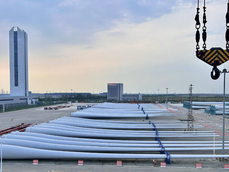 位于码头北侧,这一排排、一列列排布整齐的是射阳港区打造风光装备产业特色港的闪亮名片,也是射阳港区坚持集团分星级定价经营思路、执行“一主一辅一揽货”运营模式的响亮成果。