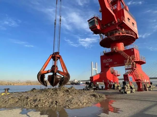 响水港区灌江码头前沿1-4#泊位淤泥沉积严重,导致部分船舶无法顺利靠港,影响正常生产作业。响水港区灌江港务分公司聚焦提质增效,精准实施创新举措,利用两台废旧的梅花抓斗开展清淤工作。梅花抓斗在短时间内可以抓取大量淤泥,准确控制抓取的深度和范围,确保清淤工作的精确性和高效性。以往委派外部施工单位进行清淤作业,耗时较长,费用较高,本次自主清淤,通过门机、装载机、渣土车的连轴运转,仅用时10天,就完成了码头前沿作业区的淤泥清理,节省清淤费用约27万元。