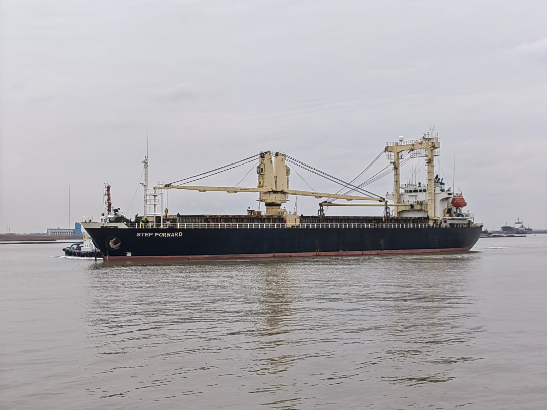 12月16日上午,在盐城港引航站引航员的精心引导下,巴拿马籍“STEP FORWARD”轮(“进步”轮)顺利靠泊响水港港务码头4#泊位。“进步”轮船长114.5米,吃水7.9米,从印度尼西亚运载约9170吨的镍铁,货值约1688万美元。该轮是盐城港响水港区口岸正式开放以来“到访”的首艘入境国际船舶,标志着盐城港响水港区外贸业务实现从无到有的新突破。