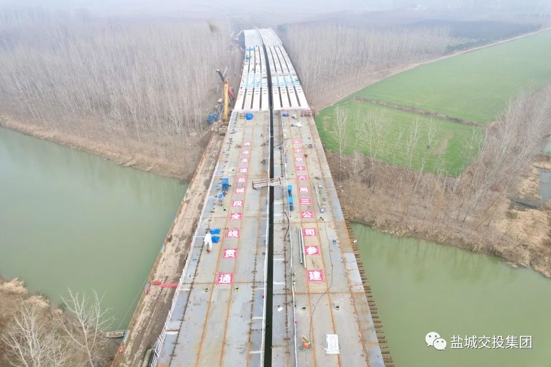 此次贯通的废黄河大桥全长646米,跨越黄河故道生态管控区,为全线控制性工程。为最大程度减少施工对周边生态环境的影响,项目管理团队积极践行绿色发展理念,以(37+55+37)米钢箱梁的方式跨越黄河故道,并采用装配式预制箱梁“搭积木”的方式建造大桥的引桥部分,架设装配式箱梁共136片。