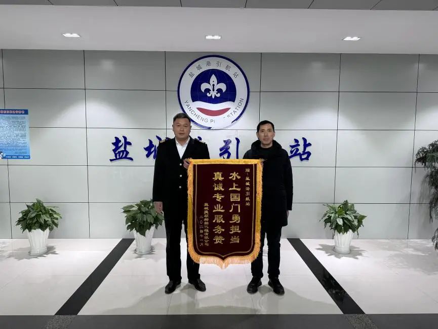 盐城港引航站收到江苏盐城港智慧港口有限公司、中天大丰海缆有限公司、盐城捷顺船舶代理有限公司的三面锦旗