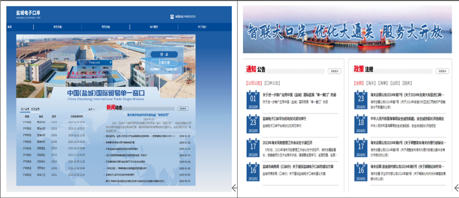 随着盐城港“一港四区”全开放,为了更好地促进经济发展、优化企业营商环境,根据市政府关于推进我市电子口岸建设的要求,建设盐城电子口岸平台,为政府提供数据共享、风险管理、数据分析等服务,为联检单位提供AR眼镜智慧查验、报港一键申报、入境一键接入等服务,为企业提供货物报关、船舶动态申报、集装箱箱单打印、货物信息实时查询、商品品名校验、自动申报等十大服务。总体实现政府服务、口岸监管、企业申报等协同作业、信息互联、数据共享,提高政府决策、口岸监管、企业通关、物流服务的智能化、智慧化、便利化水平。截至目前盐城电子口岸平台全年累计收录报关单已经破万,全年累计收录报关单总货值达500多亿元。