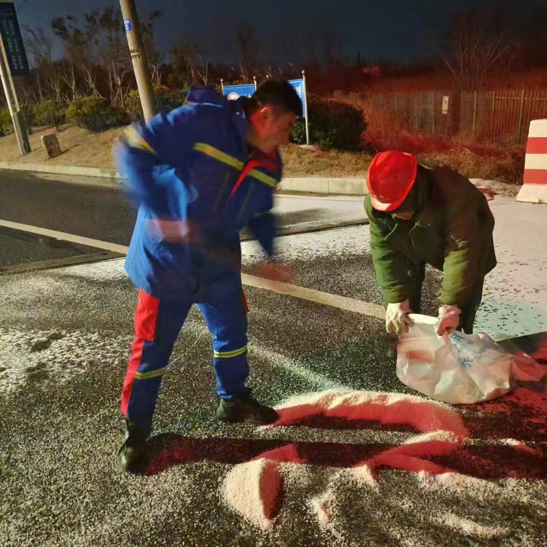 为保证车辆的装卸和安全行驶,22日夜间,射阳港区风电公司第一时间对积雪进行了撒盐融化处理,并用铁锹和扫帚将积雪清理到道路两旁,以防止夜间结冰。
