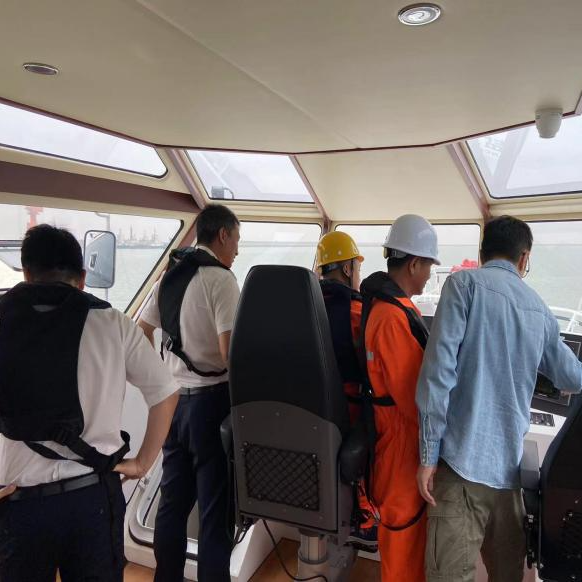 (艇作“的卢”飞快,技如“霹雳”炫睛,引航艇拉着引航员赶往巨轮所在)