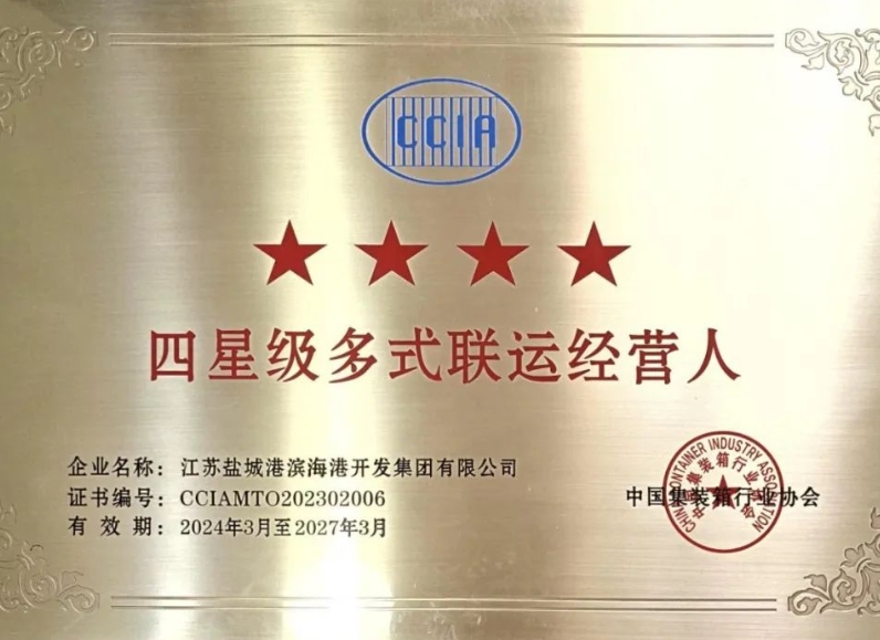 近日,中国集装箱行业协会组织2024年度第一批多式联运经营人等级评估。集团多家子公司经综合评估,获中国集装箱行业协会星级多式联运经营人资质认证,其中滨海港集团获评四星级多式联运经营人。