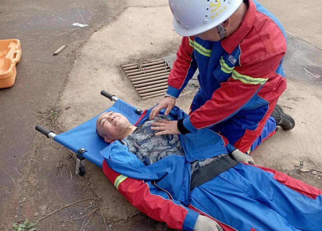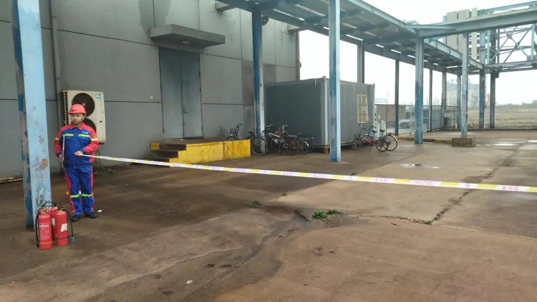 通讯警戒组在安全区域拉起警戒线,救援组迅速穿戴防护用品,紧急切断TK102阀门。