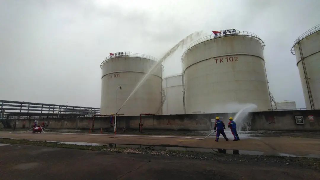 火情失控后,应急抢险组用移动泡沫装置灭火,并开启喷淋对储罐降温,同时使用水炮对储罐加强降温。在各小组的有序配合下,本次演练圆满结束。