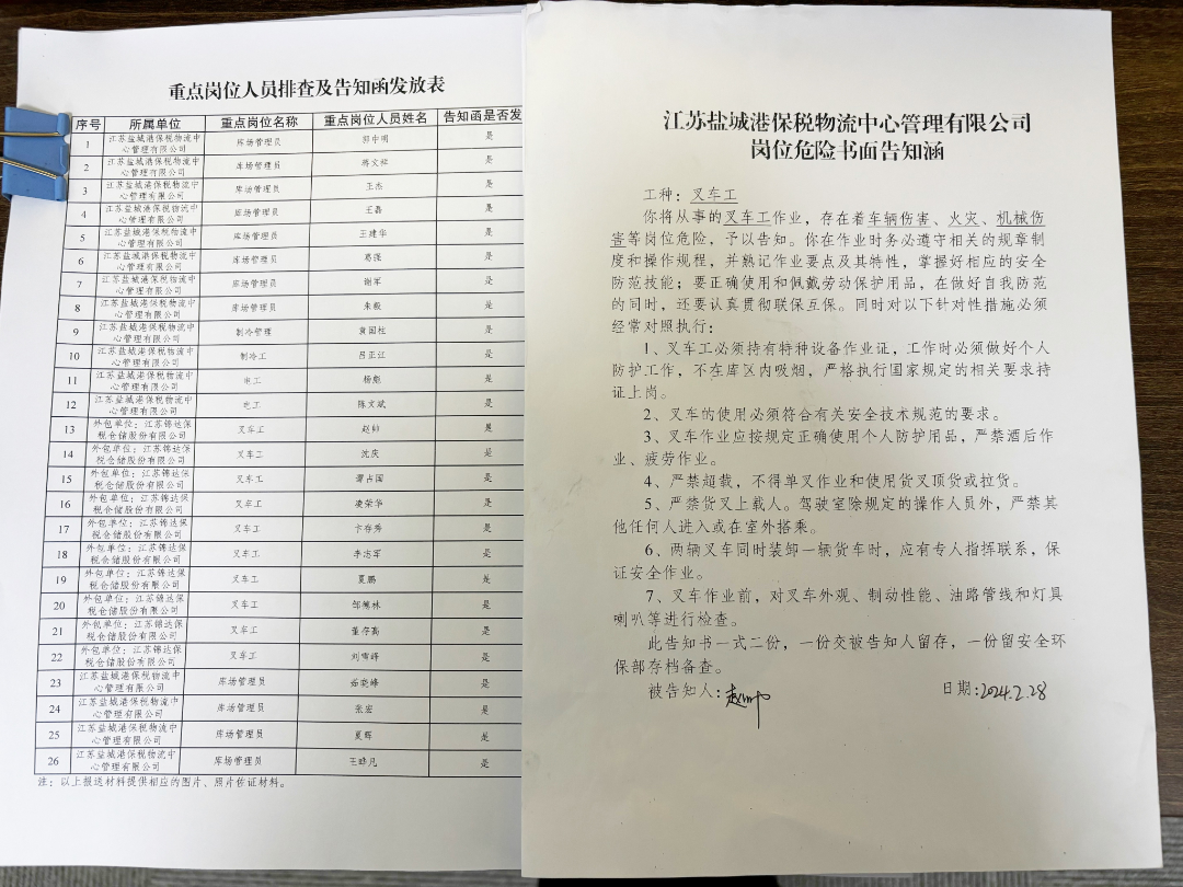 为切实加强公司“三外”安全管理工作,防范遏制外包作业安全风险,近日,盐城港保税物流中心针对外来单位、外来车辆、外来人员开展“三外”专项整治行动。