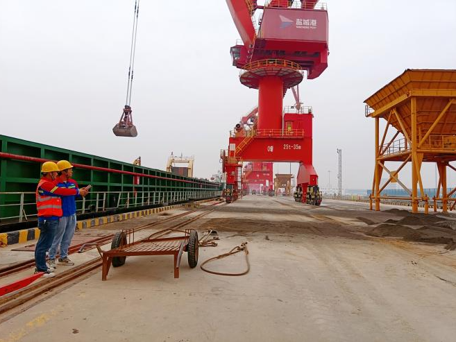 射阳港区设备班组秉承“学以致用,学用结合”的思想理念,多频次参加岗位操作标准化互检活动,不断强化实操经验。设备班组加强对大型设备防风装置的检查和保养,提高设备使用性能,使“合规管理”“提质增效”在港区遍地开花。