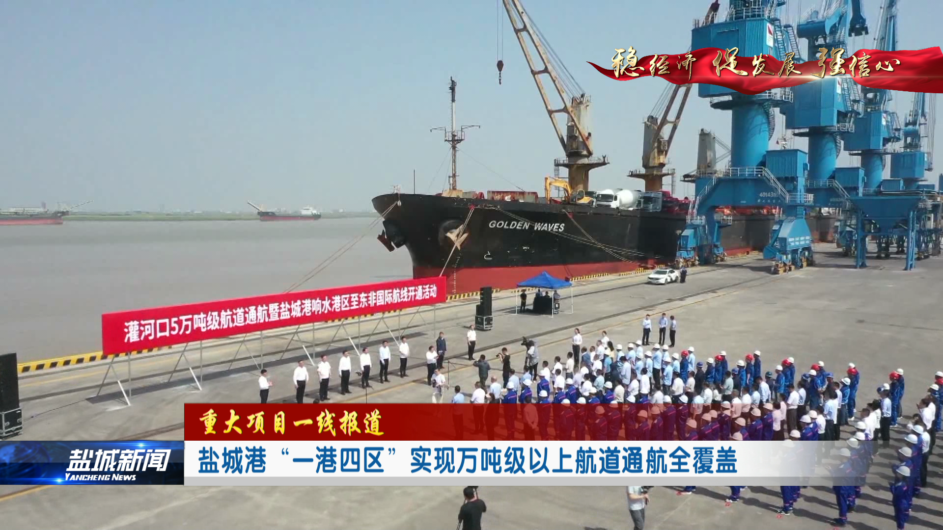 灌河口5万吨级航道通航后,我们盐城港“一港四区”万吨级以上航道就实现了通航全覆盖,为我们响水港区实现河海联运一体化,打造国家级港口型物流示范园奠定坚实的基础,用新质生产力激发港口发展“源动力”,扎实做好经略海洋这篇大文章,为助力盐城打造“蓝色经济”增长(极)提供强劲的港口引擎。