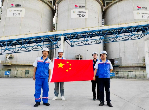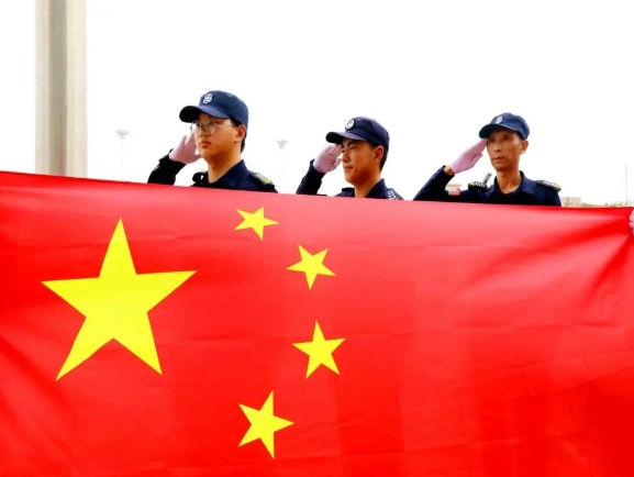 盐港人与国旗同框