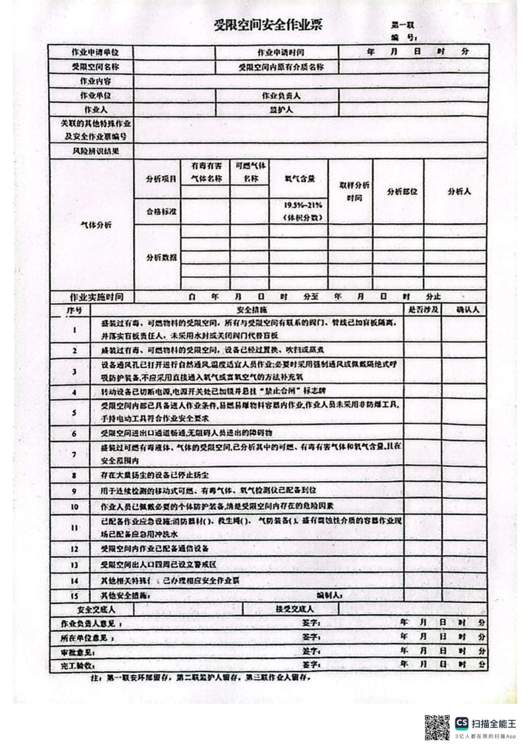 规范作业,切勿冒险。有限作业必须进行严格审批,作业前必须进行危险有害因素辨识,并将危险有害因素、防控措施和应急措施告知作业人员。