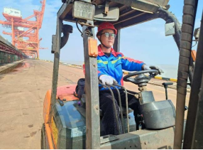 路俊:“叉车驾驶需要高度的精准度和协调性,因为每一次的搬运都关系到货物的安全和码头的整洁。虽然工作有些繁忙,但看到货物堆码井然有序,内心都会感到无比的满足。”