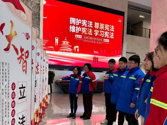 公司内外的法治宣传展板、横幅吸引了众多目光,让员工在驻足观看的同时,对法律有了更直观的认识。同时,通过观看以宪法为主题的法治宣传片、“大家”讲宪法等形式,让员工在工作之余也能享受到法治文化的熏陶。