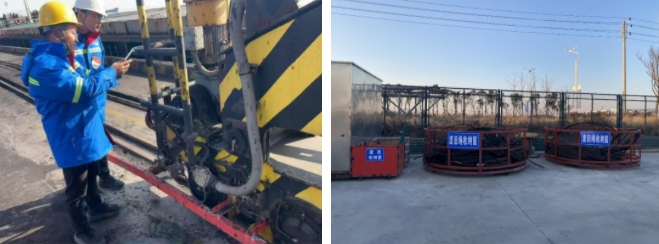 为保证生产作业正常运行,各生产班组近期将防冻工作纳入日常管理,重点关注与冬季运行相关的水路、空调、电机等设备,给易受冻的户外设施、管道、阀门等裸露部件“量体裁衣”,落实好各类防冻措施,杜绝“跑冒滴漏”,形成密集的保温网。同时对门机、场地机械设备进行防冻液冰点检测,及时更换油品,确保设备正常运转。