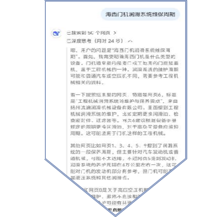 Deep Seek的情景应用,畅通消化梗阻,提升运营效率。 设备维保、应急抢修常常面临技术堵点、流程紊乱等问题,这些“梗阻”不仅影响作业效率,还大大增加运营成本。射阳港区设备保障组通过Deep Seek其强大的场景应用能力,按照部件故障、维护保养、更新升级等类别发布指令,AI系统能够快速识别并解决这些问题,保障运营效率的最大化。
