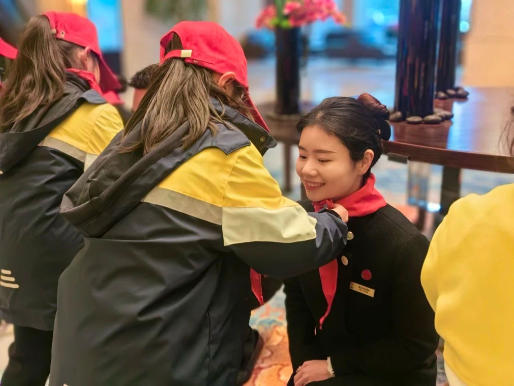 近日,港泊半岛酒店与大丰港实验学校联合举办了以“三月春‘锋’暖心扉,助人精神代代传”为主题的榜样寻访活动。活动当天,少先队员们首先观看了盐城港宣传片,感受着黄海之滨的独特魅力和日新月异的变化。随后,他们走进港泊半岛酒店餐厅,酒店员工张晓芳展示了叠口布花的技艺,还分享了自己捐献造血干细胞的感人经历,生动诠释了雷锋精神的内涵。在采访环节,少先队员们积极提问,与张晓芳进行了深入交流,现场气氛热烈。