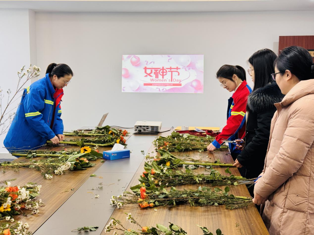 国际股份公司举办插花与观影活动。女职工们以康乃馨、向日葵等花材创作艺术作品,尽显温婉与豪情;通过观看《哪吒之魔童闹海》,汲取 “打破偏见、锐意进取” 的精神力量,为集团发展注入巾帼动力。