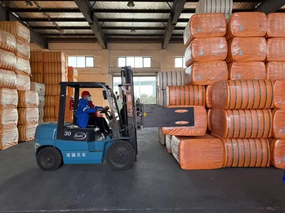 精准操控叉车穿梭于橙色货海之间