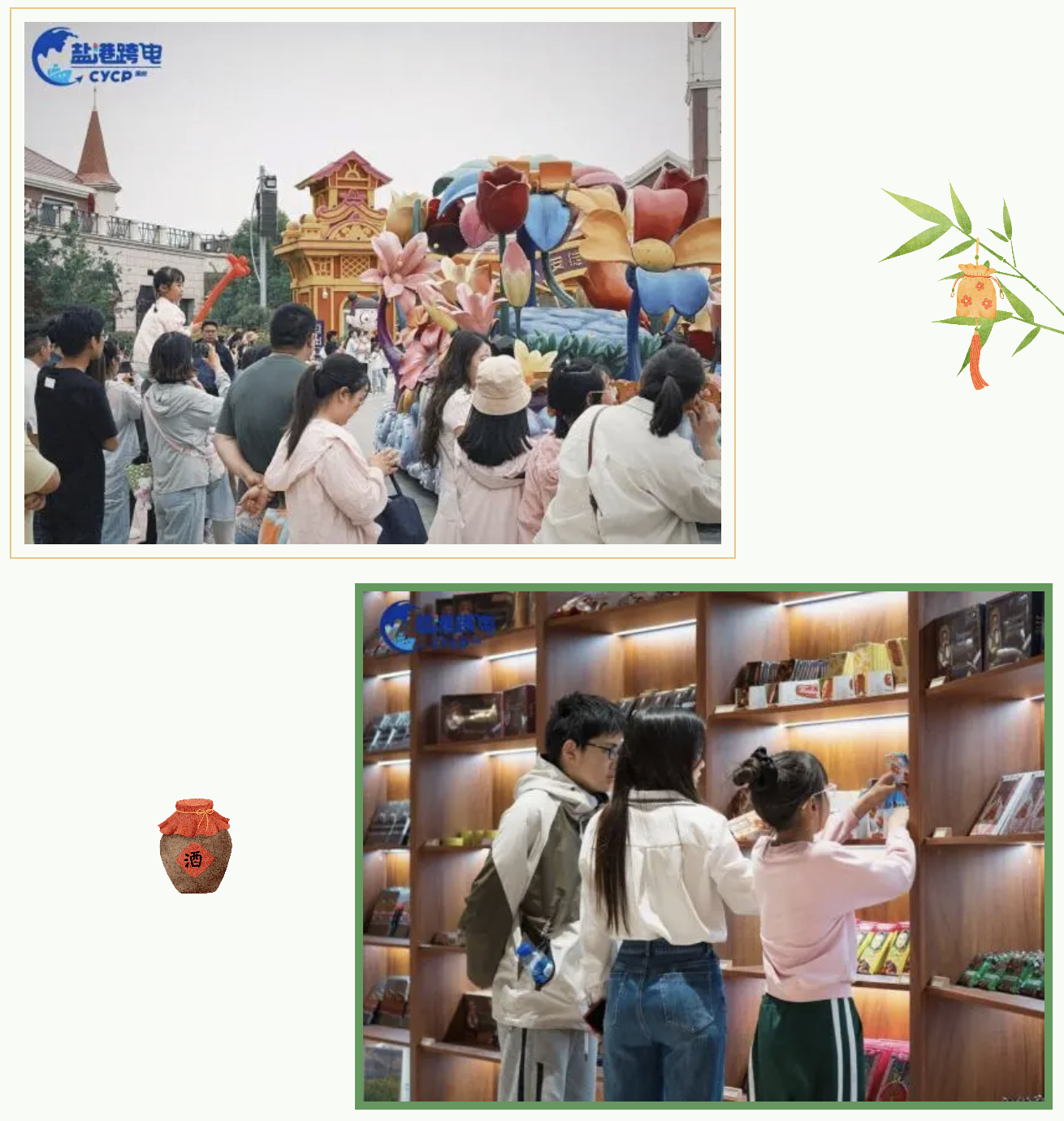在盐城宝龙店与射阳趣伏里店的显著区域,特别设置的端午节主题互动区,成为了节日期间的欢乐焦点。活动期间,顾客参与了一系列精心设计的传统趣味游戏。“射五毒挑战”、“滚瓶子赢好礼”等环节通过精准投掷纳福,滚动特制瓶子,让顾客亲身体验传统端午节的富有童趣的习俗魅力并赢取了包括品牌试用装、零食饮料以及端午特色小礼品在内的丰厚奖品。