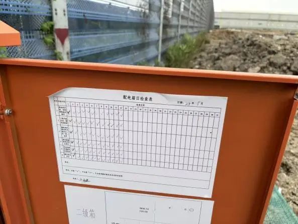 施工区域发现1个二级配电箱检查记录未及时更新,未做到每日一检,存在漏电、触电风险。
