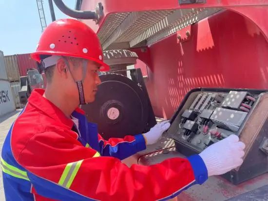 一天深夜,一台正在作业的正面吊突发故障,若不及时修复,整个堆场作业效率将大幅下降,严重影响腹地企业的生产。接到通知后,王卫东顾不上深夜的疲惫,迅速赶到现场,对设备进行全面细致地检查,并制定维修方案。经过几个小时的紧张抢修,正面吊重新启动,恢复正常作业。此时,天空已泛起鱼肚白,但王卫东看着顺利运转的设备,脸上洋溢着欣慰的笑容,心中满是炽热的激情。