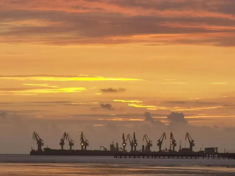 把第一箱货物托向泛红的天际