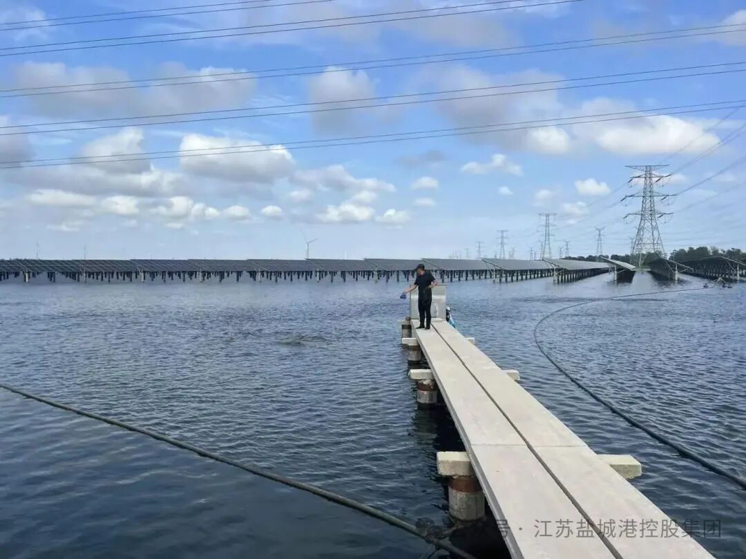在盐农华丰7956亩的水域上,光伏板整齐排列如蓝色海洋,水下鱼虾游弋正欢。这个由海角社区 与悦达投资联合打造的项目,以“一地两用、渔光互补”模式实现“上发电、下养鱼”的生态奇迹。自2024年10月15日并网运行以来,年均发电量达4.43亿千瓦时,每年可节约标煤13.34万吨,减少二氧化碳排放36.65万吨,提升养殖密度20%。