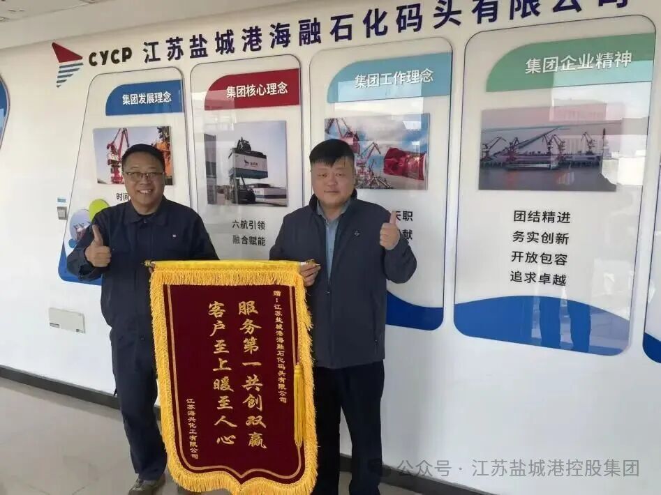 近日,金光博汇专程向石化码头送来锦旗,以此致谢码头在突发恶劣天气的考验下,争分夺秒完成液碱装船作业,成功为企业规避3万美元船舶滞期费用的暖心行动。这面鲜红的锦旗,不仅是双方多年来深厚合作情谊的生动见证,更是企业对石化码头专业优质服务与高效应急处置能力的高度赞誉。
