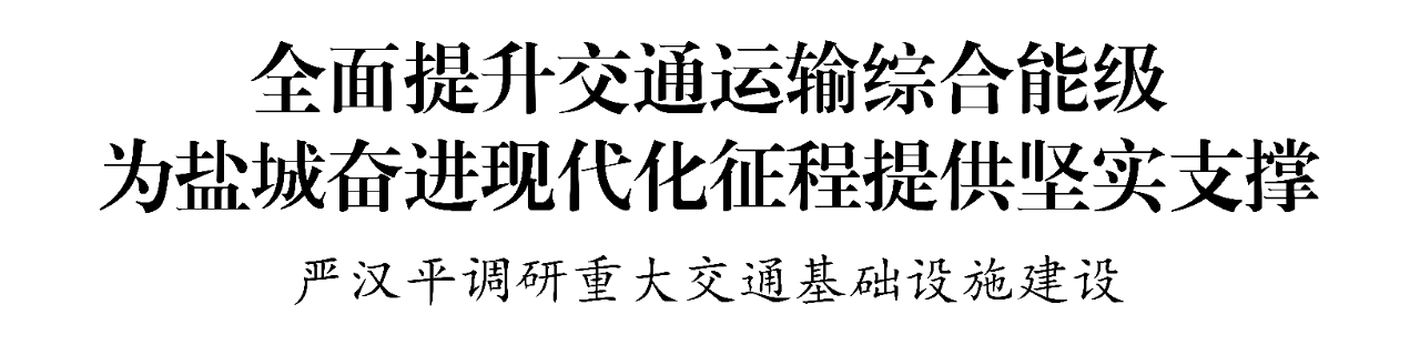 10月29日下午,市长严汉平调研我市重大交通基础设施建设工作,强调要深入学习贯彻党的二十届四中全会精神和习近平总书记关于交通强国的重要论述,高质高效推动重大交通基础设施项目建设,加快构建内畅外联交通运输体系,为盐城奋进现代化征程提供坚实支撑。