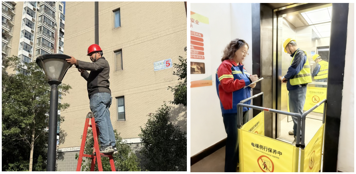 在完成37部电梯深度维保后,大丰城区项目的电梯故障报修率大幅下降。与此同时,她带领团队同步推进小区基础设施改造,更换路灯200多盏、修复路面180余平。为减少施工对业主生活的影响,她带领团队推行“错峰施工+温情告知”模式,对施工区域进行规范围挡并加强保洁管理,有效保障了业主生活秩序。