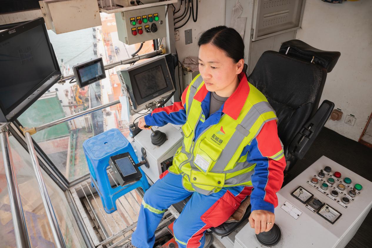 “力量”的表情:操控门机的女操作员们,手握操纵杆,沉稳应对每一次起吊、转运任务。看似纤细的臂膀,却能驾驭重型设备攻克一个又一个作业难题,她们以柔克刚,向困难发起 “炙热” 挑战。这份力量,是突破瓶颈的 “开山斧”。