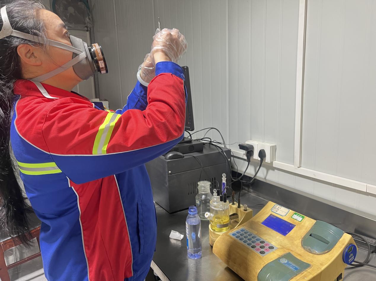 每一个数据都关系到产品质量,每一次检测都关乎生产安全。这是港储石化化验组谨记的一句话。化验员骆江兰,是化验团队的“定海神针”,面对近3500吨甲基叔丁基醚化验任务,她主动承担起最复杂、最紧急的样品检测任务。新的一批甲基叔丁基醚到达,骆江兰同志连续奋战四个多小时,对密度、粘度、闪点等十几个关键指标进行精确测定,为后续作业赢得了宝贵时间。“我们的吴海凤、杨霞,个个都是好样的!每当有紧急任务,姐妹们总是抢着干、争着上,确保样品不积压、检测不延误,没有人计较个人得失。”在平凡的化验岗位上,她们以坚韧与奉献,为公司的安全生产和高效运营筑起了一道坚实的质量防线,用实际行动诠释了“妇女能顶半边天”的责任与担当。