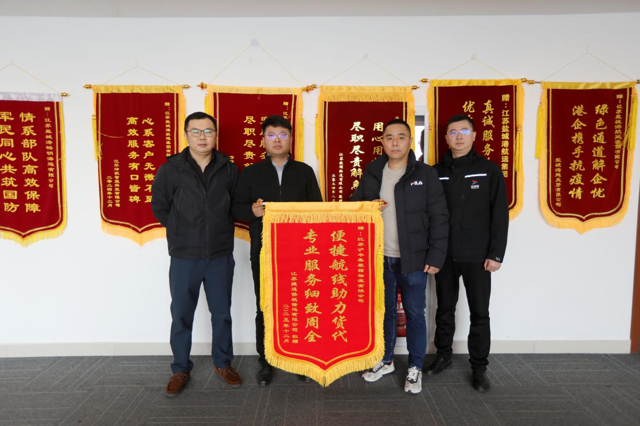 近日,航运集团接连收获两份满载认可与情谊的暖心“礼物”——江苏博汇纸业有限公司、江苏捷通保税储运有限公司先后将烫金锦旗送至公司,不仅是对航运集团近期服务成效的高度肯定,更印证了其“十四五”期间暖心服务的坚实成果与深厚口碑。