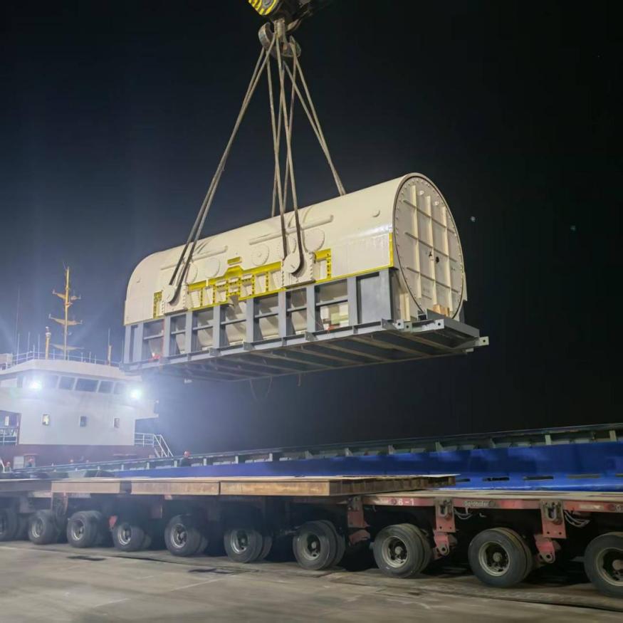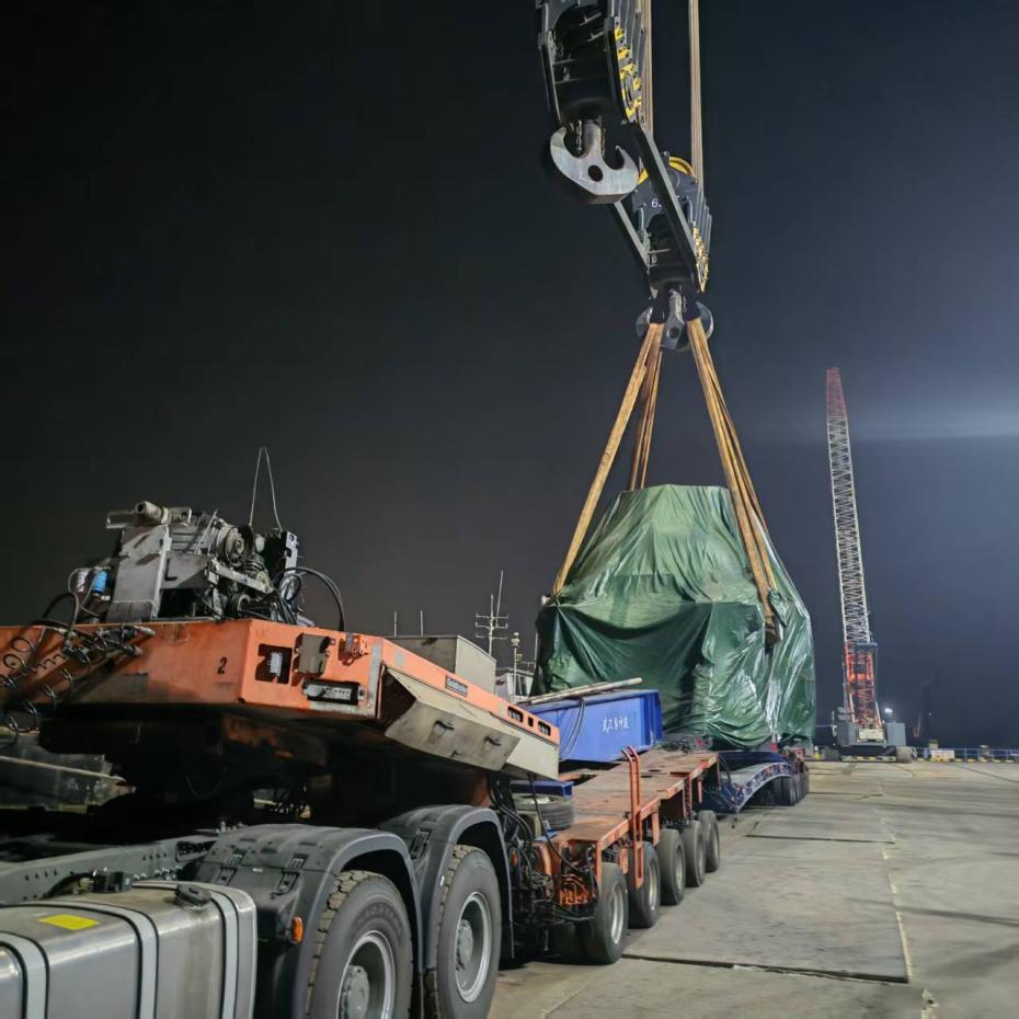 此次集中作业期间,港区陆续完成了两台总重349吨的船舶内燃机、一台405吨发电机、一套280吨发电机组以及两套总重380吨设备的接卸任务。面对船舶集中到港、货种复杂多样的挑战,响水港区生产团队提前部署制定个性化的工艺方案,科学调配吊装资源。针对变压器等精密设备,专项采取低速平稳平移、多点立体防护、全程实时监测等精细化举措,全方位保障货物完好无损、作业安全零事故,以专业实力赢得了新老客户的高度认可与广泛赞誉。
