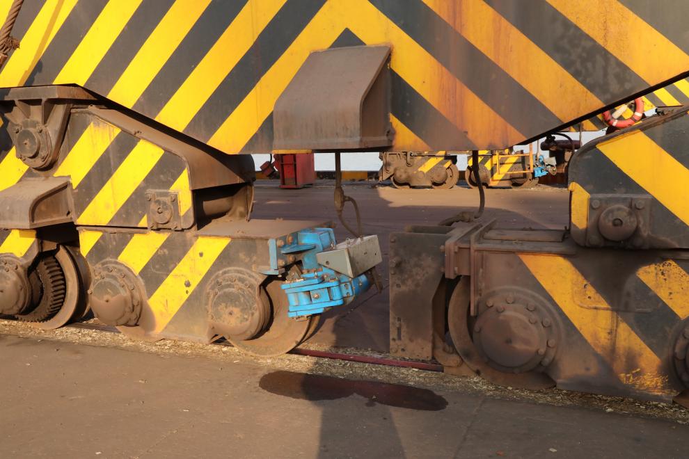 该装置工作原理类似于汽车的“刹车盘”。当强风吹动门机滑移20至30公分时,系统内置的自动编码器会即时感应并触发夹轮器,将行走轮牢牢锁死在轨道上,形成刚性制动。这套系统响应迅速、制动可靠,从根本上提升了大型机械在恶劣天气下的抗风能力与作业稳定性。