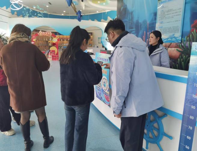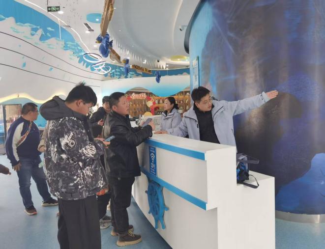 面向学生群体,景区推出专属集章福利活动。 工作人员全程指导游客领取“冒险手册”,在原神海洋元素实验站、环保垃圾分类挑战站提供专业讲解与协助。游客集齐3个印章可兑换钥匙扣、海港主题软面本等文创产品,集齐7个印章可获赠温泉票与海洋馆门票组合礼包,创作大赛获奖者更有机会赢得住宿权益。数字体验区同步升级,港泊员工协助游客操作虚拟导游小程序,实现与钟离 “云游” 海盐产地的沉浸式体验;在数字藏品兑换处,工作人员为游客讲解收藏攻略,助力游客带走专属新春纪念。此外,景区还设置原神玩家专属餐饮区、王者情侣打卡路线,由专人引导游览。