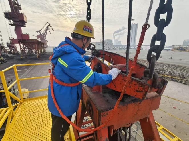 射阳港区坚持“管好设备、服务生产”理念,将精细化管理延伸至设备维护末梢。通过建立设备全生命周期管理体系,严格落实“一机一档”和“间隙保养法”,港区持续保持着码头机械设备完好率98%以上的高位运行。同时,港区组建维保突击队,对大型设备液压管路、消防管线等进行“地毯式”隐患排查,实现隐患整改率100%。